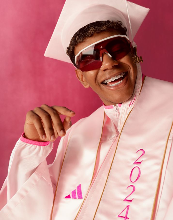 Pour fêter le lancement de ses crampons, Lamine a posé en toge rose bonbon. Oui, vous avez bien lu. Une toge rose bonbon. Comme quoi, même les footballeurs ont le droit de s’amuser.