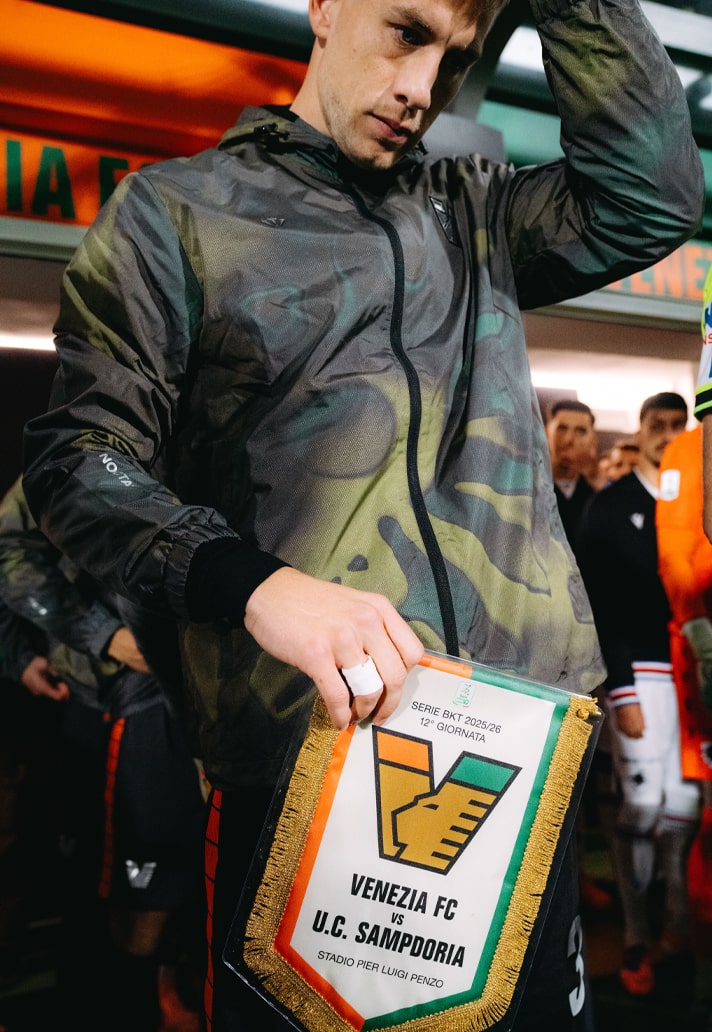 La veste a fait ses débuts officiels sur le terrain lors du match Venezia – Sampdoria au Stadio Pier Luigi Penzo le 8 novembre 2025, moment où l’identité sportive rencontre celle de la culture locale et de la mode.